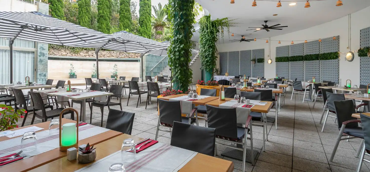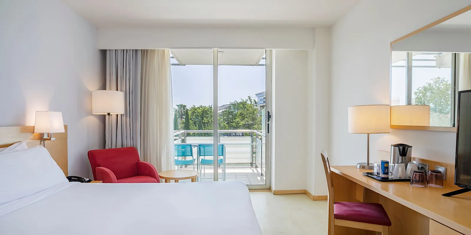 Guests can enjoy bright and spacious rooms, two outdoor pools, a fully equipped gym, and a sauna. The hotel also features Mediterranean-inspired dining options and a laid-back bar, perfect for winding down after a day of golf or exploring the local town. Its central location means you’re only steps from the promenade, beaches, and harbour restaurants.
