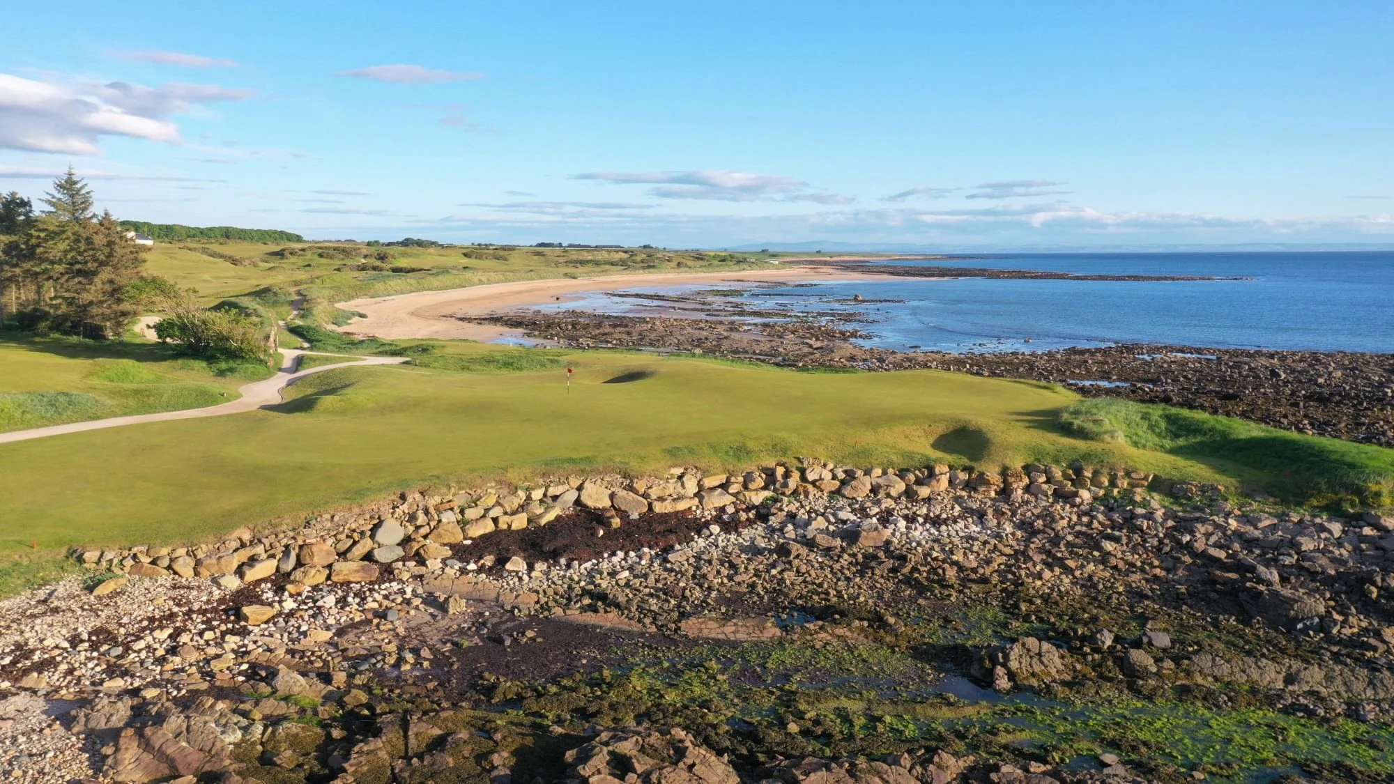 The course is laid out in a sweeping horseshoe along the North Sea, with panoramic views from nearly every hole. Wide fairways, dramatic elevation changes, and intricate green complexes create a test that is both challenging and fair, rewarding bold play while still offering enjoyment for all abilities.