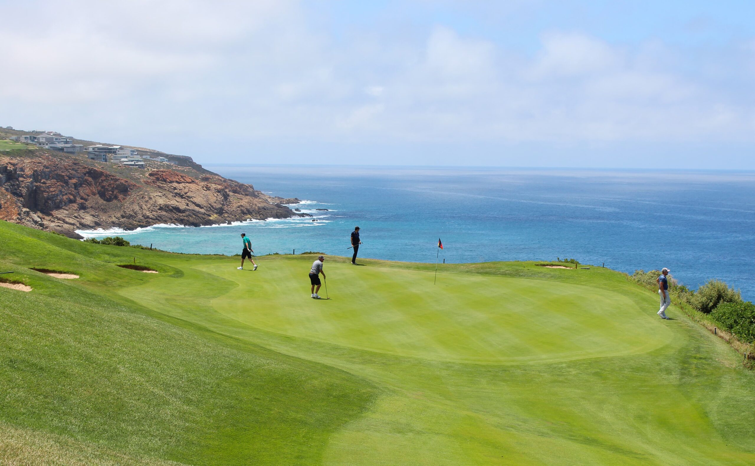 Measuring over 6,500 metres, the par-72 layout is defined by rolling fairways, undulating greens, and unforgettable cliffside holes where shots must carry across deep ravines to reach the target. Ocean views dominate almost every hole, with whales and dolphins often visible from the tees and fairways.